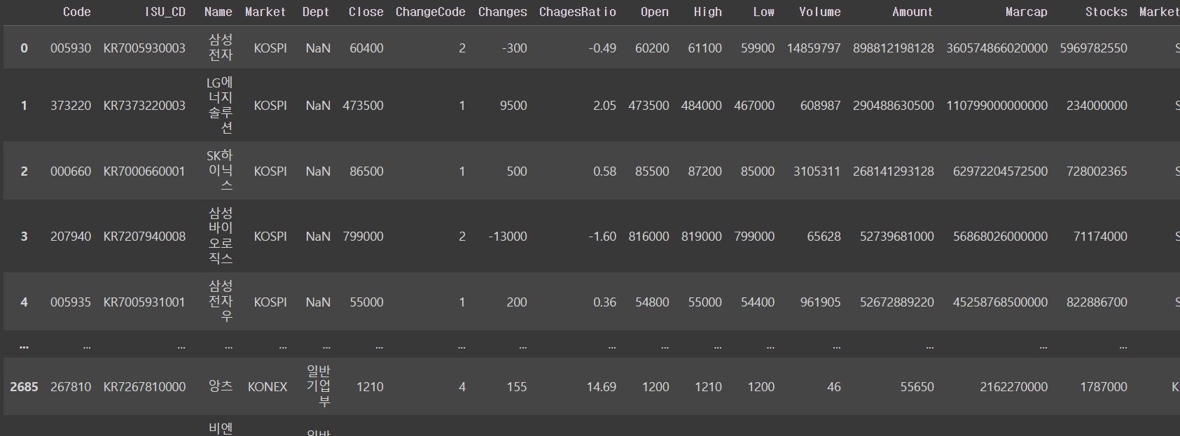 df = fdr.StockListing('KRX')